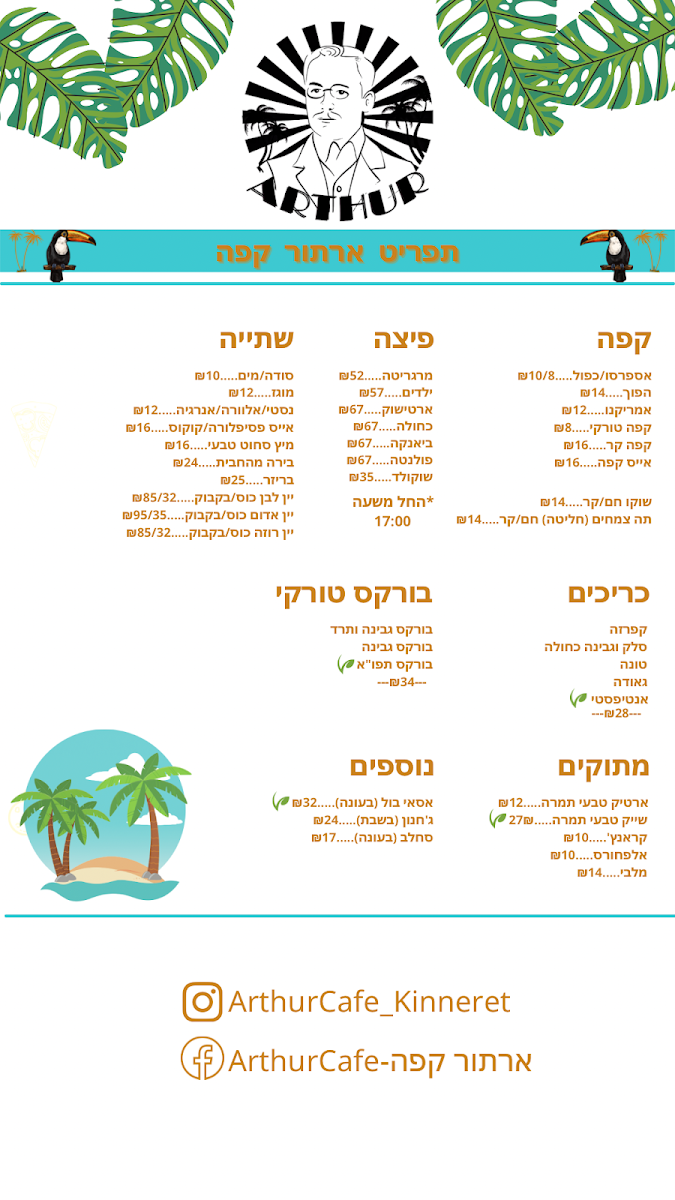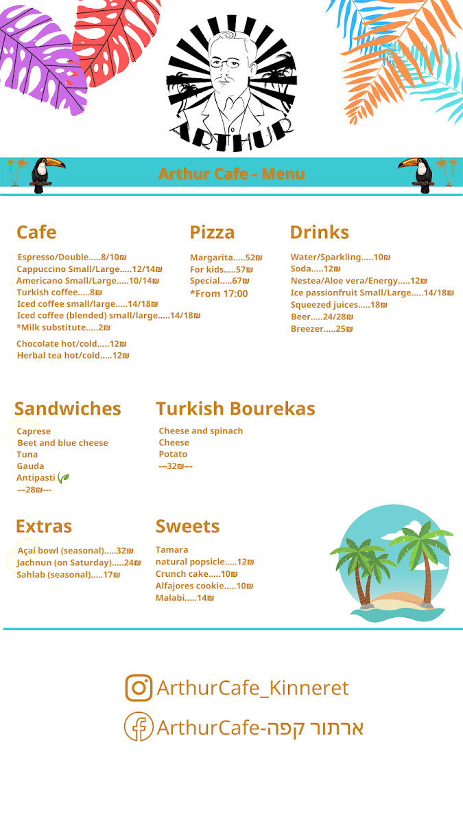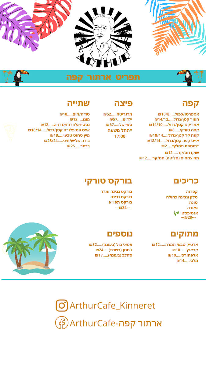 ארתור קפה - Arthur Cafe - עגלת קפה בכנרת Menu